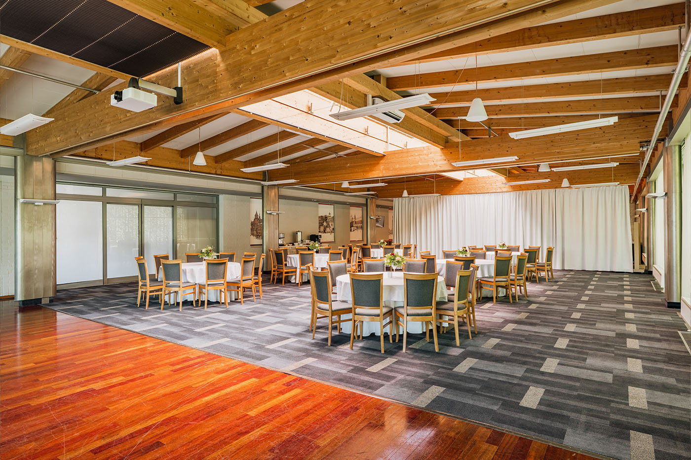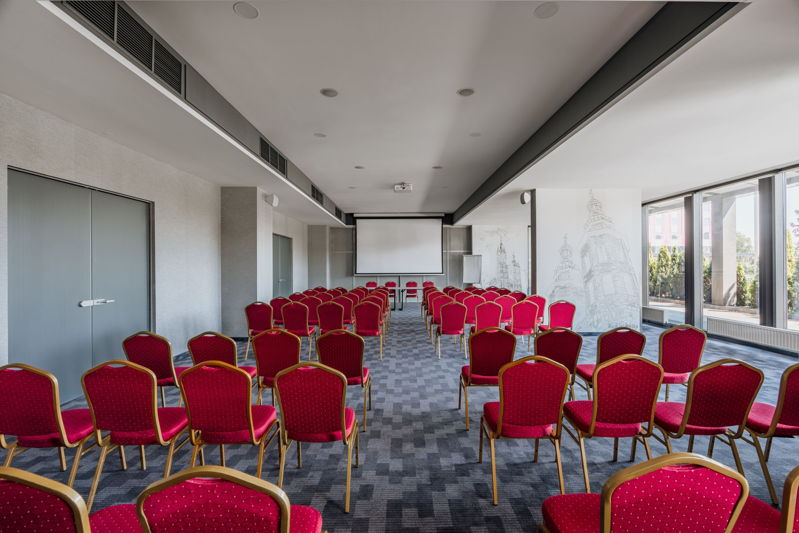 Sala znajduje się na parterze. Dzięki dużym oknom daję idealny dostęp do światła dziennego, który sprzyja atmosferze skupienia i koncentracji. Oczywiście jest opcja całkowitego zaciemnienia sali. Dzięki ustawnym ścianom istnieje możliwość połączenia jej z salą Piaskową, tworząc przestrzeń o łącznej powierzchni 190 m2, która świetnie sprawdzi się przy organizacji eventów, konferencji, szkoleń, warsztatów oraz różnego rodzaju przyjęć. Dodatkowo wydzielona przestrzeń przy wyjściu z sali może zostać wykorzystana na przerwy kawowe, podczas których Goście będą mogli odpocząć i nabrać sił przed kolejną dawką wiedzy.