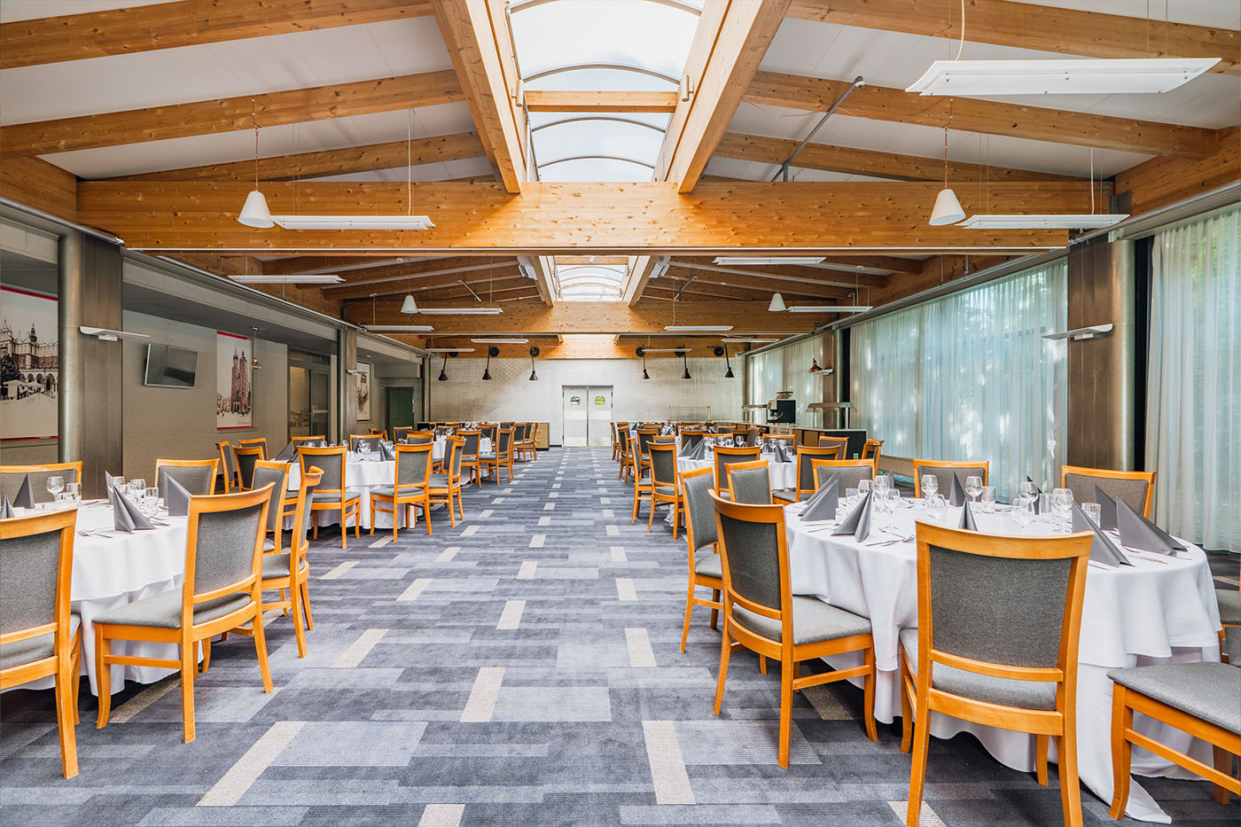 Sala Piaskowa znajduje się na parterze. Dzięki ustawnym ścianom istnieje możliwość połączenia jej z salą Kryształową, tworząc przestrzeń o powierzchni 190 m2, która świetnie sprawdzi się przy organizacji konferencji, szkoleń oraz różnego rodzaju przyjęć.
