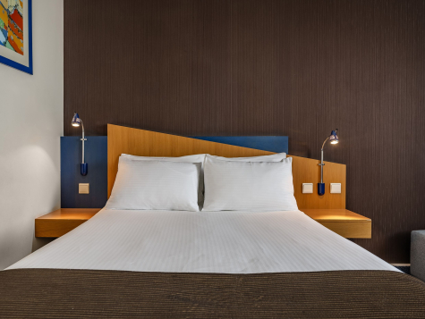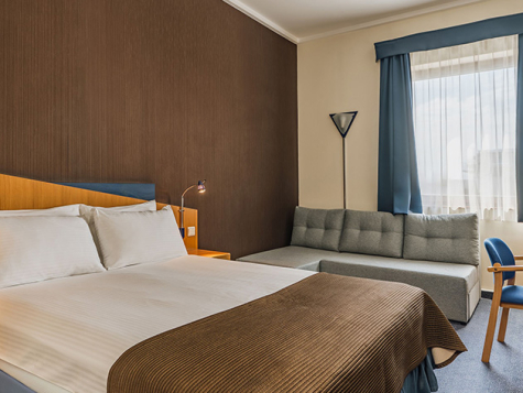 Do Państwa dyspozycji oddajemy 54 dwuosobowe pokoje z jednym podwójnym łóżkiem o szerokości 140 cm, w którym znajduje się również rozkładana sofa. Powierzchnia pokoju to ok. 20 m². Na życzenie Gości dostarczamy również łóżeczko dla dziecka. Funkcjonalne łazienki wyposażone są w kabiny prysznicowe, suszarki do włosów oraz ręczniki. Pokoje dostępne są wyłącznie dla osób niepalących.